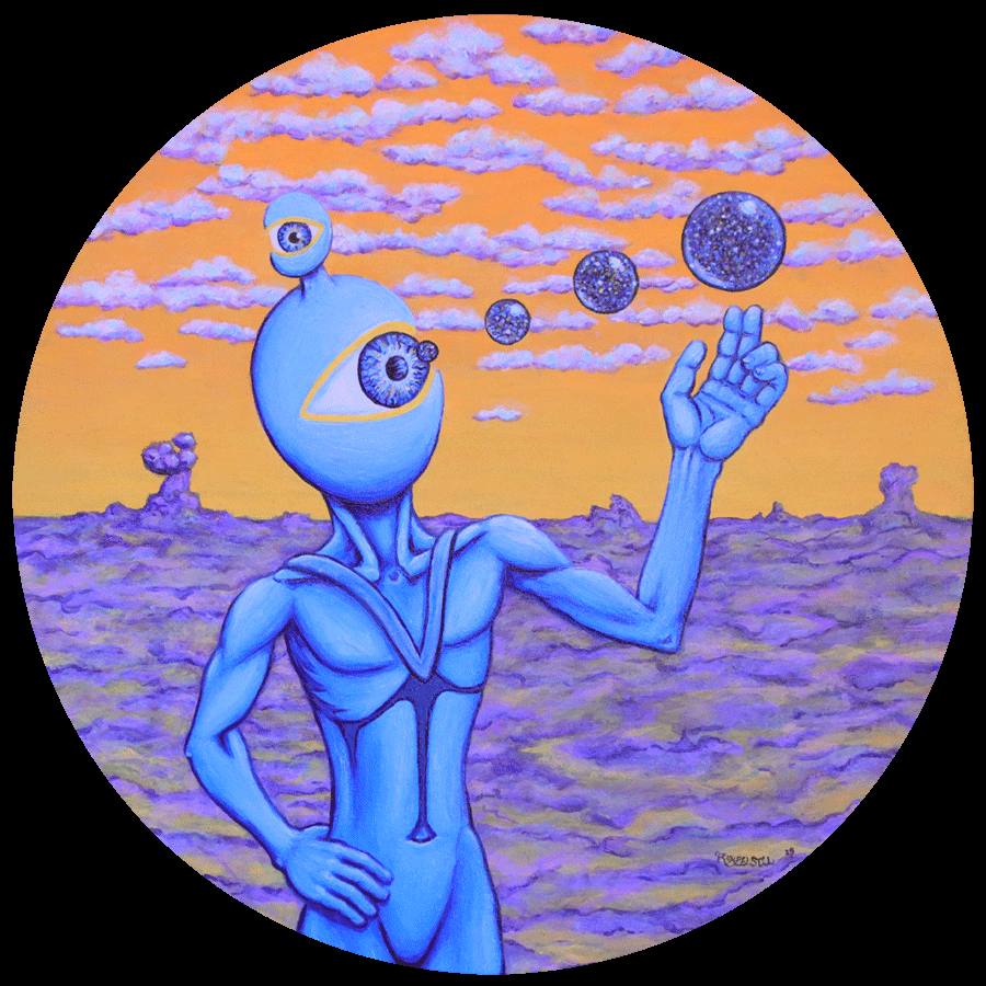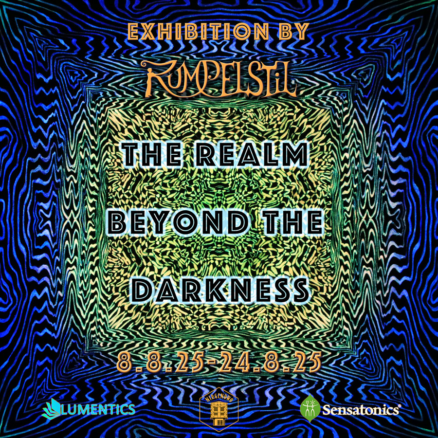 In der Ausstellung von RUMPELSTIL – Künstlerin aus Friedrichshain-Kreuzberg – erkundet das Berliner Kreativmonster den Bereich, der jenseits der Dunkelheit liegt. „THE REALM BEYOND THE DARKNESS | Der Bereich jenseits der Dunkelheit“ präsentiert surreale, abstrakte und schwarzlicht-dynamische Werke – Malereien und Objekte, die sich je nach Lichtquelle verwandeln und mit dem Raum, der Betrachtung und dem Moment in Dialog treten.