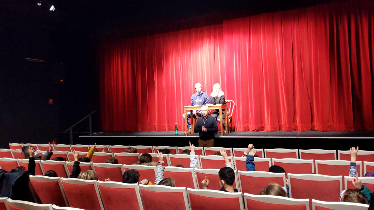 Ein ganz besonders Vorleseerlebnis erlebten die Schülerinnen und Schüler der Hundsrück Grundschule beim bundesweiten Vorlesetag am 19. November. Dabei gab es echte Theaterluft zu schnuppern – Gastgeber und Vorleseort war das Berliner Kriminal- Theater, welches zu den Mitgliedern des FKU gehört. Die Schauspielerin Jenny Löffler- bekannt aus der ARD-Serie „Sturm der Liebe“ – und der Schauspieler Mario Klischies lasen den Schüler*innen spannende Geschichten vor, bei denen die Kinder am Ende selbst zu Detektiv*innen wurden und kniffelige Rätsel lösten.