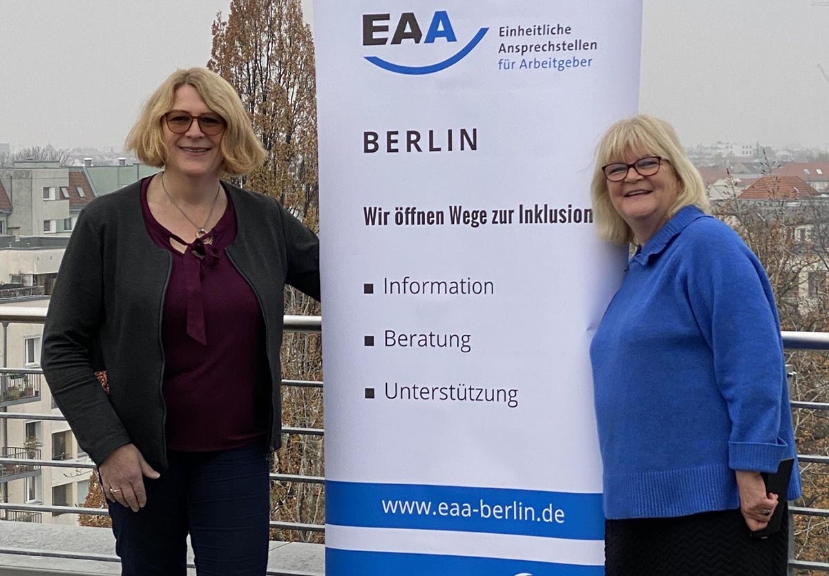 Fachkräftemangel ist in aller Munde. Menschen mit Schwerbehinderung einzustellen ist eine Möglichkeit, dieses Problem für Unternehmen zu reduzieren. Dazu beraten die ‚Einheitlichen Ansprechstellen für Arbeitgeber‘ (EAA) in Berlin, die ihre Arbeit aufgenommen haben. Die Ansprechstelle berät und informiert und unterstützt Arbeitgeber*innen zu allen Fragen oder Hürden bei der Einstellung, Ausbildung und Beschäftigung von schwerbehinderten Menschen im Betrieb: kostenlos, niedrigschwellig und unbegrenzt.