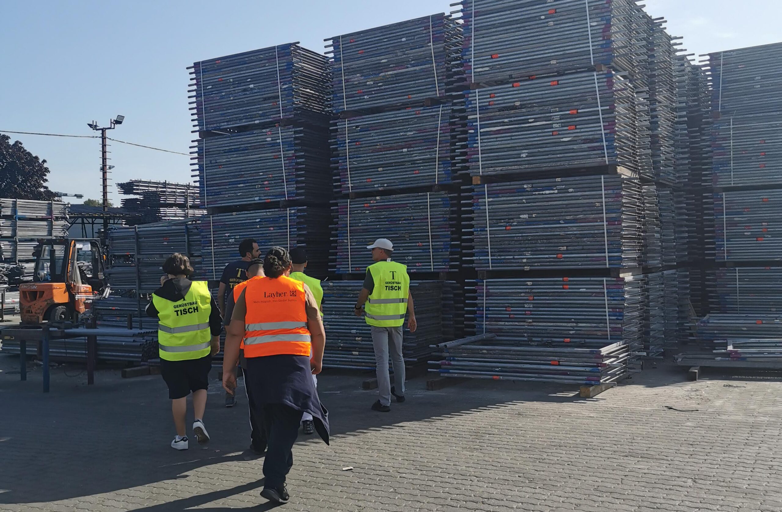 Eine achtköpfige Schülergruppe erhielt bei einem Besuch der Gerüstbau Tisch GmbH einen exklusiven Einblick in die faszinierende Welt des Gerüstbaus. Geschäftsführer, Nick Haseloff, führte uns über das große Firmengelände und die Schüler konnten hautnah erleben, wie ein Gerüstbauunternehmen in der Praxis arbeitet.