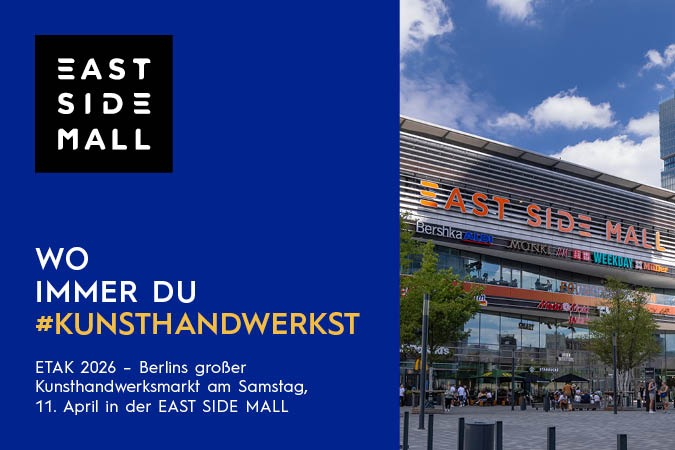 Im Rahmen der Europäischen Tage des Kunsthandwerks 2026 veranstaltet die Handwerkskammer Berlin erstmals einen Kunsthandwerksmarkt mit & in der EAST SIDE MALL – der Eintritt für Besucherinnen und Besucher ist kostenfrei. Seit 2014 sind die ETAK fester Bestandteil des Berliner Kreativ- und Kulturlebens und begeistern Menschen jeden Alters.