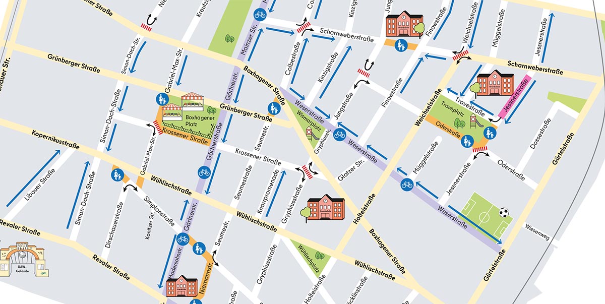 Die verkehrliche Umgestaltung im Kiez schreitet voran. Annika Gerold, Bezirksstadträtin für Verkehr, Grünflächen, Ordnung und Umwelt lädt Gewerbetreibende im Ostkreuz-Kiez (begrenzt durch Warschauer Straße, Gürtelstraße, Frankfurter Allee und Revaler Straße) sehr herzlich zu einer Informationsveranstaltung ein.