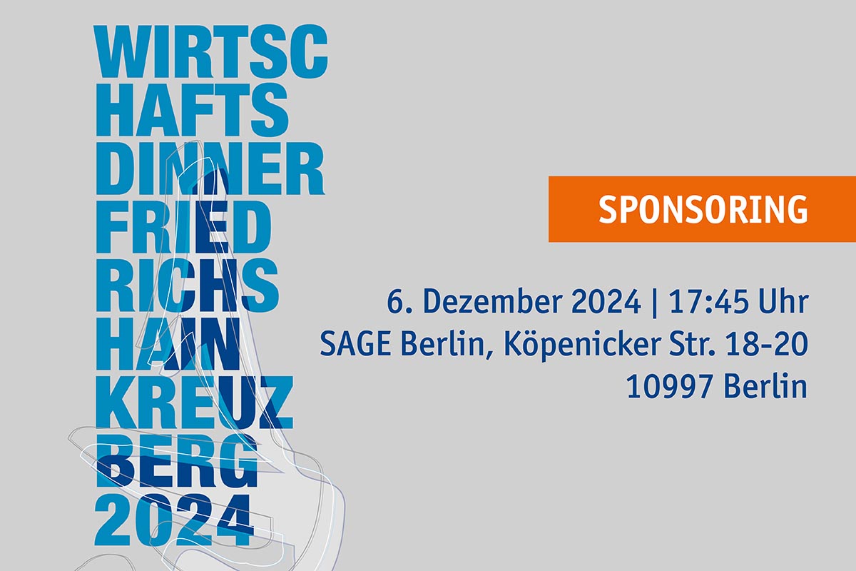 Deshalb laden wir Sie sehr herzlich ein, das Wirtschaftsdinner Friedrichshain-Kreuzberg am 6. Dezember im SAGE Berlin als wirksame Vernetzungsplattform für sich zu entdecken.