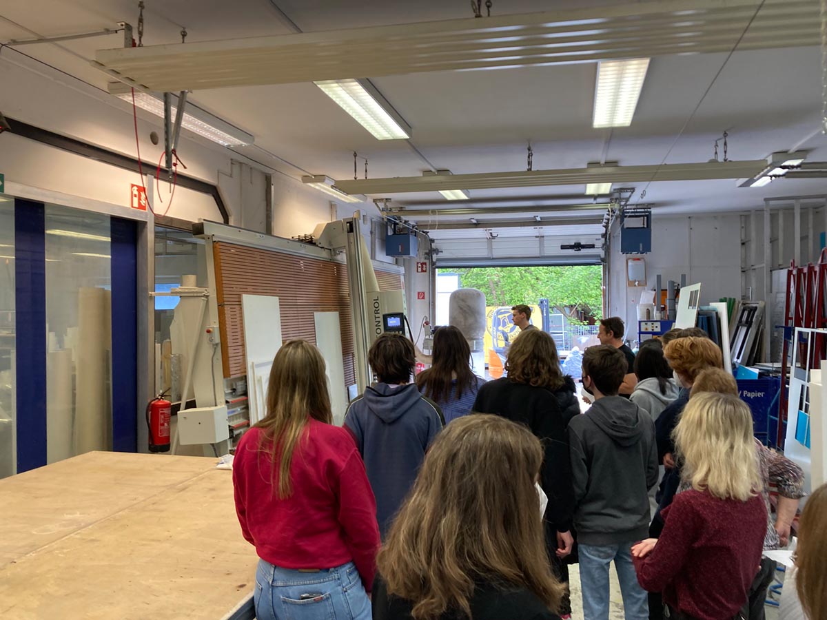Anfang Mai öffnete FKU-Mitglied Hruby Werbetechnik die Türen für Schüler*innen der Ellen-Key-Schule in Friedrichshain.