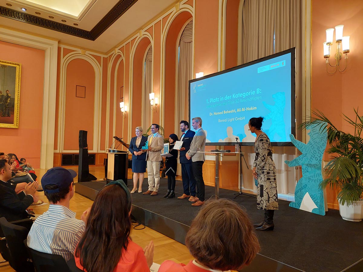 In der Kategorie B „Unternehmen mit 0 bis 30 Beschäftigten“ setzen sich Dr. Hamed Beheshti und Ali Al-Hakim mit ihrem Unternehmen Boreal Light GmbH durch.