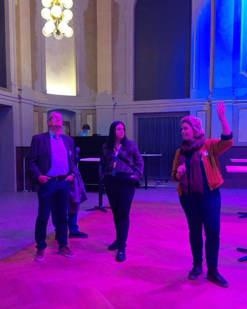 Deshalb gab es gleich zu Beginn spannende Einblicke: Ulrike Urbich , Geschäftsführerin des Kommunalen Bildungswerks, führte durch das Haus und gab Einsichten in die Geschichte und die heutige Nutzung des Ortes als Bildungs- und Kulturzentrum.