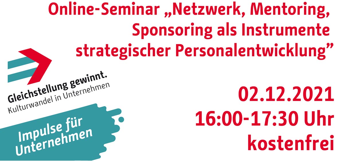 Profitieren Sie im kostenfreien Online-Seminar „Netzwerk, Mentoring, Sponsoring als Instrumente strategischer Personalentwicklung“ für Ihre persönliche Unternehmenspraxis. Mit Impulsen von Lana Wittig, Edition F / Dr. Tanja Haupt und Dr. Sophie Drozdzewski, Cross Consult.