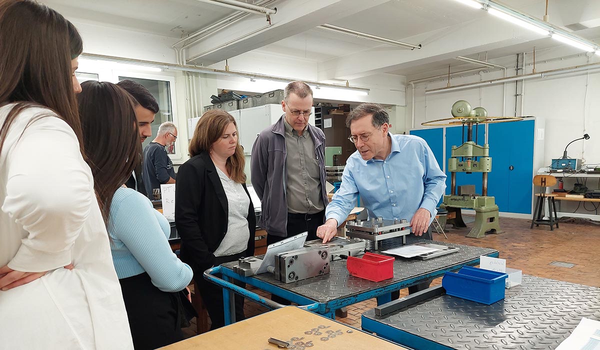 In der Kantine des Unternehmens, das im Produktbereich weltweit Industrieunternehmen mit Stanz- Kunststoff- und Drahterodierteilen sowie Baugruppen hieraus beliefert, wurden die Jugendlichen empfangen. Bei Keksen und Getränken informierte Herr von der Osten die 10. Klässler über das Unternehmen und die verschiedenen Ausbildungsmöglichkeiten. Er zeigte ihnen die verschiedenen Produkte, die im Unternehmen produziert werden und die Schüler*innen zeigten sich beeindruckt, dass die Werkzeugbauer*innen auch die Werkzeuge für die Fertigung vor Ort selbst konstruieren und bauen.