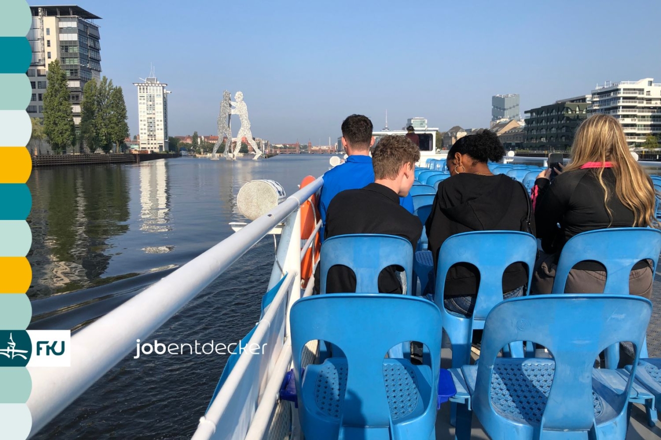 Den Auftakt machte die Stern und Kreisschiffahrt GmbH. Ausbildungsleiter und Binnenschiffer Martin Böll stand den Jugendlichen Rede und Antwort und schilderte anschaulich, wie vielfältig der Arbeitsalltag auf dem Wasser ist. Besonders beeindruckend war die gemeinsame Fahrt mit einem Fahrgastschiff von Treptow nach Berlin-Mitte. Theorie und Praxis griffen hier perfekt ineinander – und die Jugendlichen konnten hautnah erleben, was es bedeutet, Verantwortung auf einem Schiff zu übernehmen.