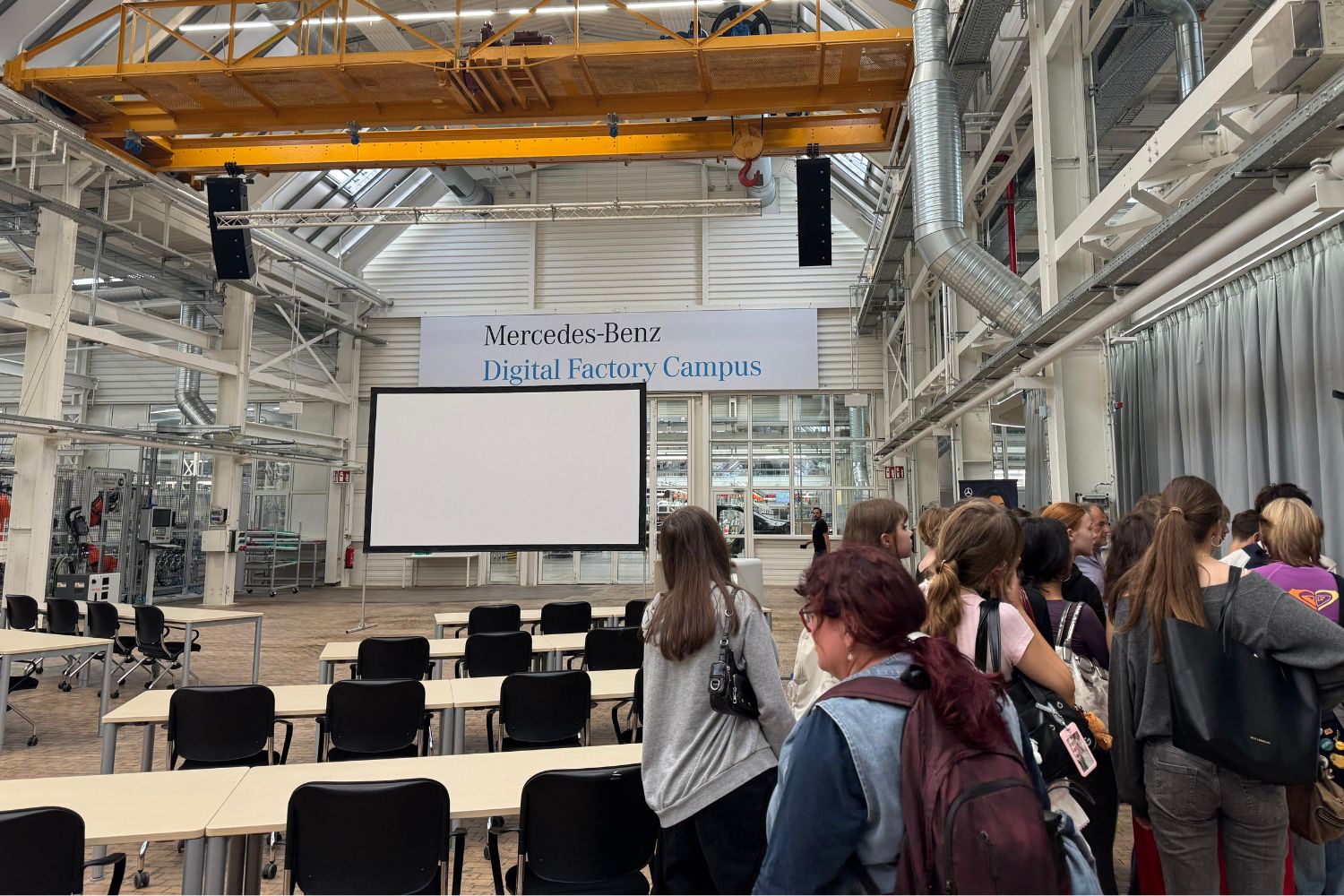 Den Abschluss bildete ein Besuch bei der Mercedes-Benz. Die Schülerinnen und Schüler erfuhren, welche Berufe hinter der Automobilproduktion stecken und wie stark Innovation und Tradition hier zusammenspielen. Auch hier standen Auszubildende Rede und Antwort – ein direkter Draht, der viele offene Fragen klären konnte und Inspiration für mögliche Praktika oder Ausbildungswege bot.