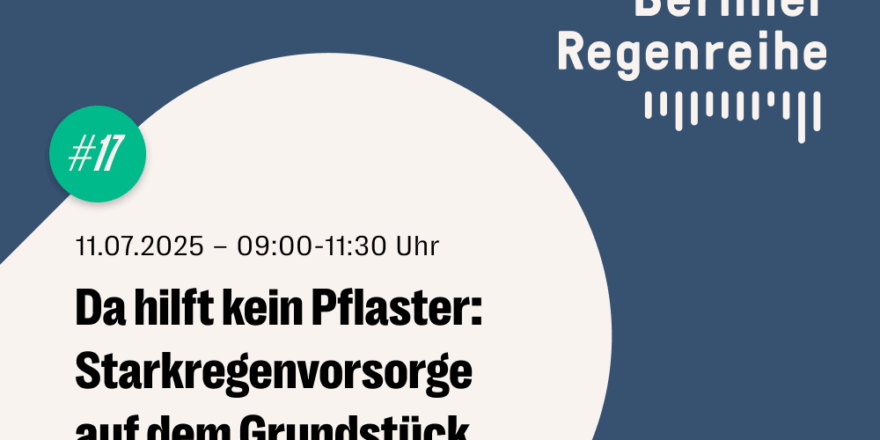 👉 Zur Anmeldung: https://regenwasseragentur.berlin/weiterbilden-und-vernetzen/starkregenvorsorge-auf-dem-grundstueck/